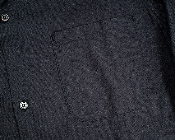WORKERS(ワーカーズ)~Open Collar Shirt, Charcoarl Linen Cotton~