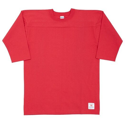 ビンテージを集めパターンを研究、型紙から何度もサンプル製作して完成したフットボールTee。フットボールTeeの特徴となる肩のヨーク切り替えは、ビンテージの雰囲気、かつ着た時に