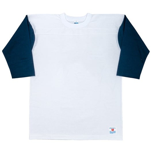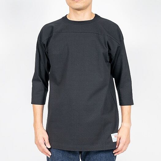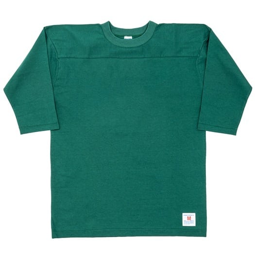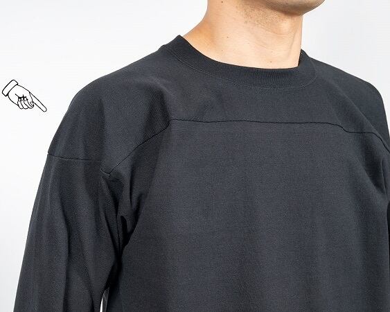 ビンテージを集めパターンを研究、型紙から何度もサンプル製作して完成したフットボールTee。フットボールTeeの特徴となる肩のヨーク切り替えは、ビンテージの雰囲気、かつ着た時に