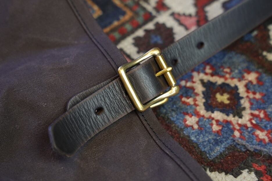 肩にかけられるロングハンドル式で、長さは真鍮バックルにより調整可能。