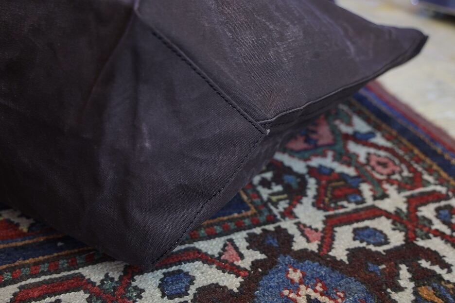 摩擦によって現れるパラフィン特有のチョークマークを製品加工で引き出し、味わいのある風合いに。経年していくにつれ防水効果は軽減していくものの、長期間の使用に耐える堅牢度の高さを誇ります。