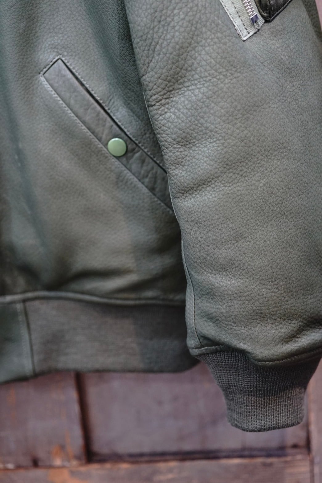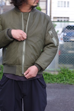 本来のMA-1のナイロンシェルとは異なる、立体的な表情や着込む事による経年変化は