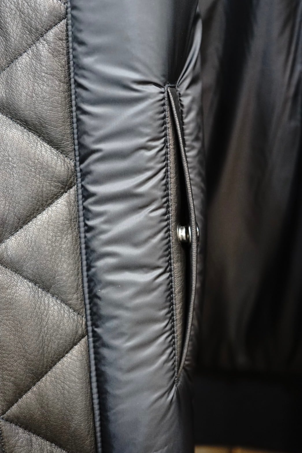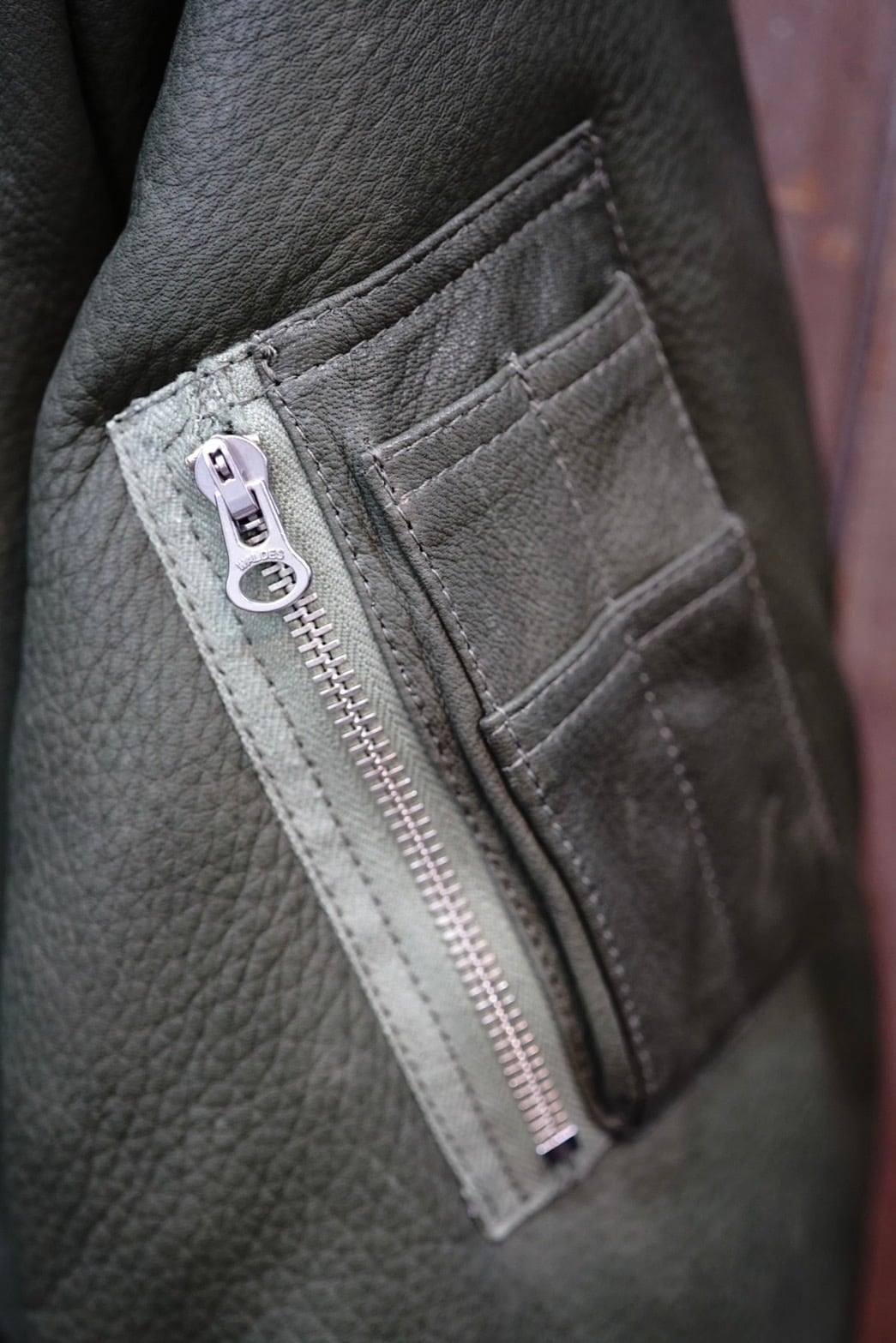 厚みのあるレザーを1,0mm厚程に割って使用。インサレーションには3M社の