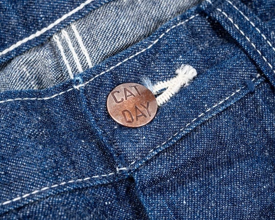 素材にはCOTTON100、9,5ozインディゴデニムを使用。タテヨコそれぞれで番手や撚りを変えた糸を使用し、ヨコ糸は生成りではなくうっすらグレーがかった糸を使用。