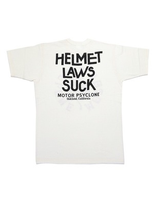 "HELMET LAWS SUCK=ヘルメットなんてクソ喰らえ!!"とプリントが描かれています。