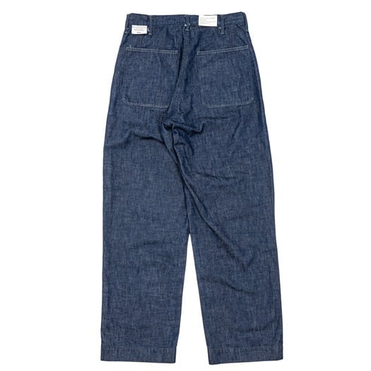 新型USNベイカーパンツが登場。アメリカ海軍で採用されていたユーティリティトラウザースがモチーフとなる本製品は、通常のベイカーパンツに似たポイントがいくつかありながら、ウエストにダーツが入っていたり、ポケットがパッチポケットではなく、裏側からたたきつけだったり、バックポケットがフラップ無しだったり。本作ではオリジナルの特徴をとらえつつ