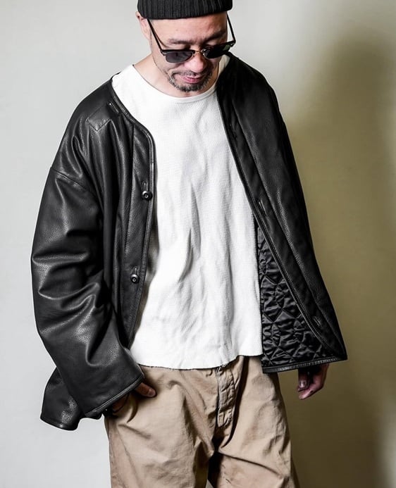 サイズ感はかなりゆったりとしているので、FINE CREEK LEATHERSブランド同サイズを選んでもざっくりとラフに羽織っていただける着用感となってます。