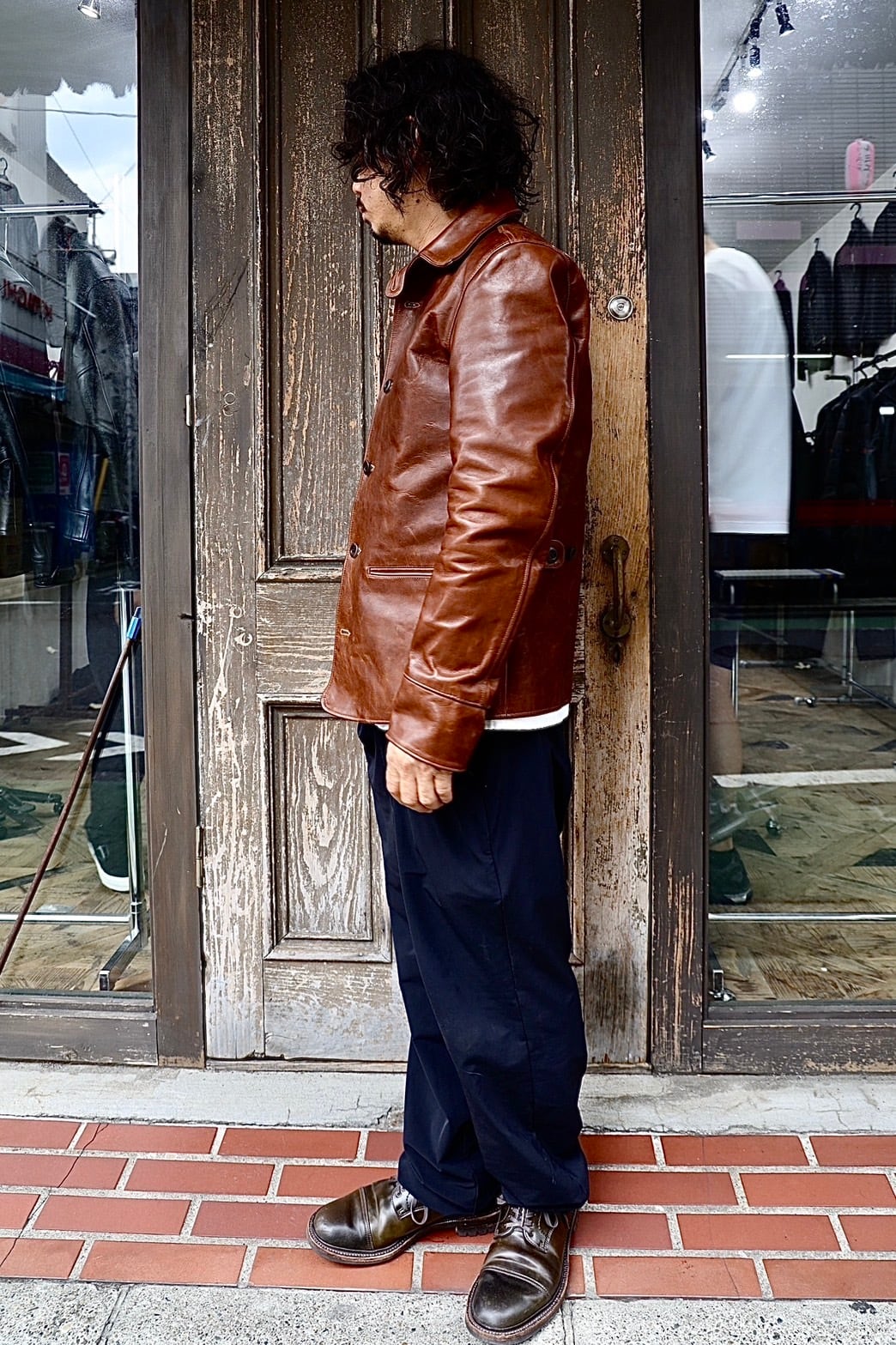 素材には1.3mm厚以上のフルベジタブルタンニン、ピグメント仕上げの新開発ホースハイドレザーを使用しており、多指革、オイル感のあるレザーはシワやアタリによって革がプルアップし、立体感ある表情の変化が見られます。また擦れなどにより茶芯が現れる表情豊かな経年変化をお楽しみ頂けます。
