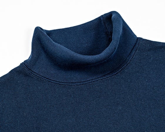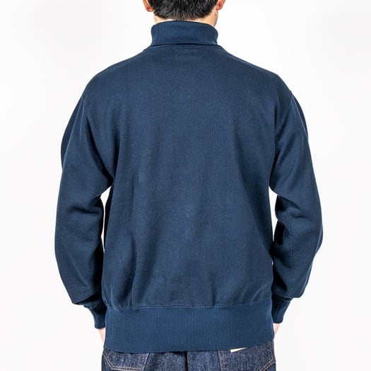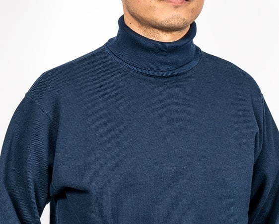 RAF Sweater、イメージは映画ダンケルグで出てきたRAF(Royal Air Force)パイロットが着ていたハイネック。イギリス系のミリタリーウールセーターをイメージしますが、ウールだと当然肌刺し感があるため雰囲気を残しつつ、コットンで製作されたのがWORKERSのRAF Sweaterになっています。