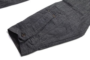 1930'sワークシャツがモチーフとなる本製品。襟にはチンストラップ、鉄ボタン、ユニオンチケット、裾には補強のマチが入るなど、基になったワークシャツのディティールを余すことなく再現しながらサイズ感やポケット配置などのバランスを考え、ベーシックに着用しやすいスタイルに仕上げられています。