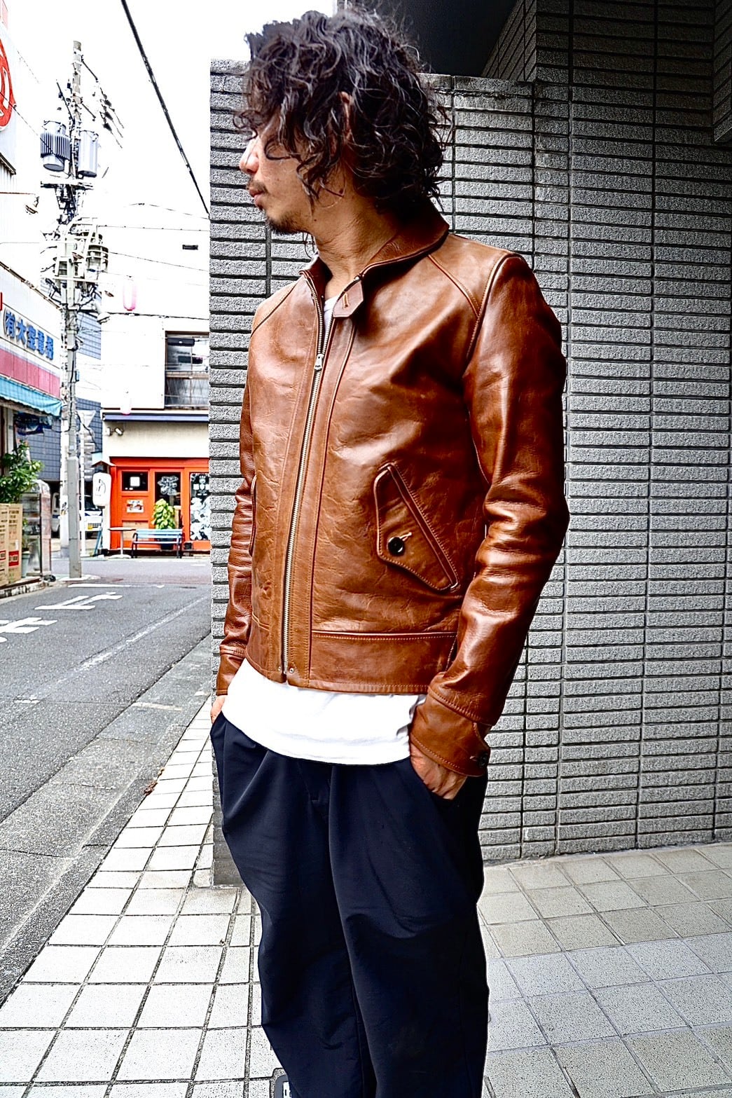 ポケットフラップや身頃裏のポケットを凝ったデザインで構成し、袖口裏にはコーデュロイを採用。多指革、オイル感のあるレザーはシワやアタリによって革がプルアップし、立体感ある表情の変化が見られます。また擦れなどにより茶芯が現れる表情豊かな経年変化をお楽しみ頂けます。
