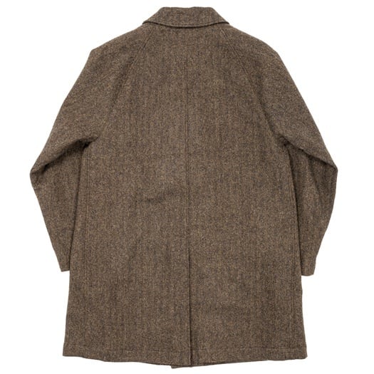 冬の定番とも言えるステンカラーコートをワーカーズ的要素を加えて製作された『Bal Coller Coat』今回使用される素材は、愛知県一宮、また岐阜の羽島で製作されている国産のツイード。