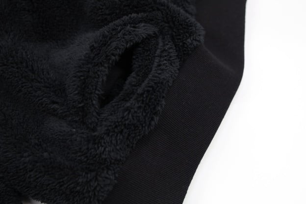 表面のボリュームはもちろん、裏面も包まれるような着用感。ややテーパードしたシルエットで裾はリブ仕様。ウエストはリブ+ドローコードでウエスト調整が可能となっています。両側にはポケット、背面右側にバックポケットが一つ設けられています。