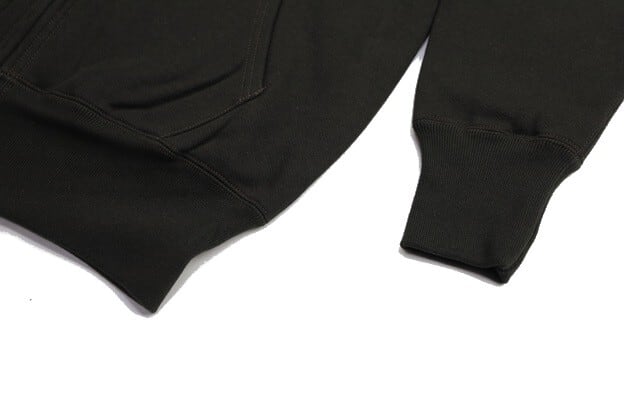 裏地のサーマルは定番サーマルではなく、本製品のためにオリジナルで製作された厚みのあるワッフル地となります。スタイルは60年代のフルジップパーカーをイメージしており、ジップには"YKK"社製のダブルファスナー仕様。ややトーンの落としたスートブラックボディに、裏地のワッフルサーマルにはオートミールが組み合わせられ、フード裏もワッフル地となるため、2トーンの配色が効いたデザインとなっています。