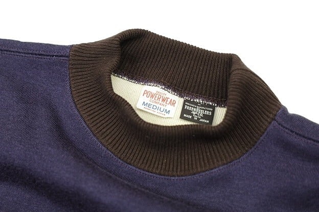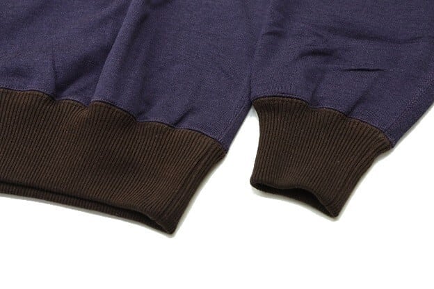 1950年代のスウェットシャツをデザインイメージとした本製品は、同ブランドでは初となるCOTTON50 RAYON50のダブルフェイス生地を使用したモデルとなります。滑らかな手触り、微光沢のある表面はコットンレーヨン、裏地はコットンリブニットの構成となり、着用時の肌ざわり、そして伸びにくいレーヨンの伸縮性を確保。袖リブは裏地とは別のコットンリブを採用しており、フェードネイビーのボディに対して、チャコールブラックの配色で非常に雰囲気ある仕上がりとなっています。