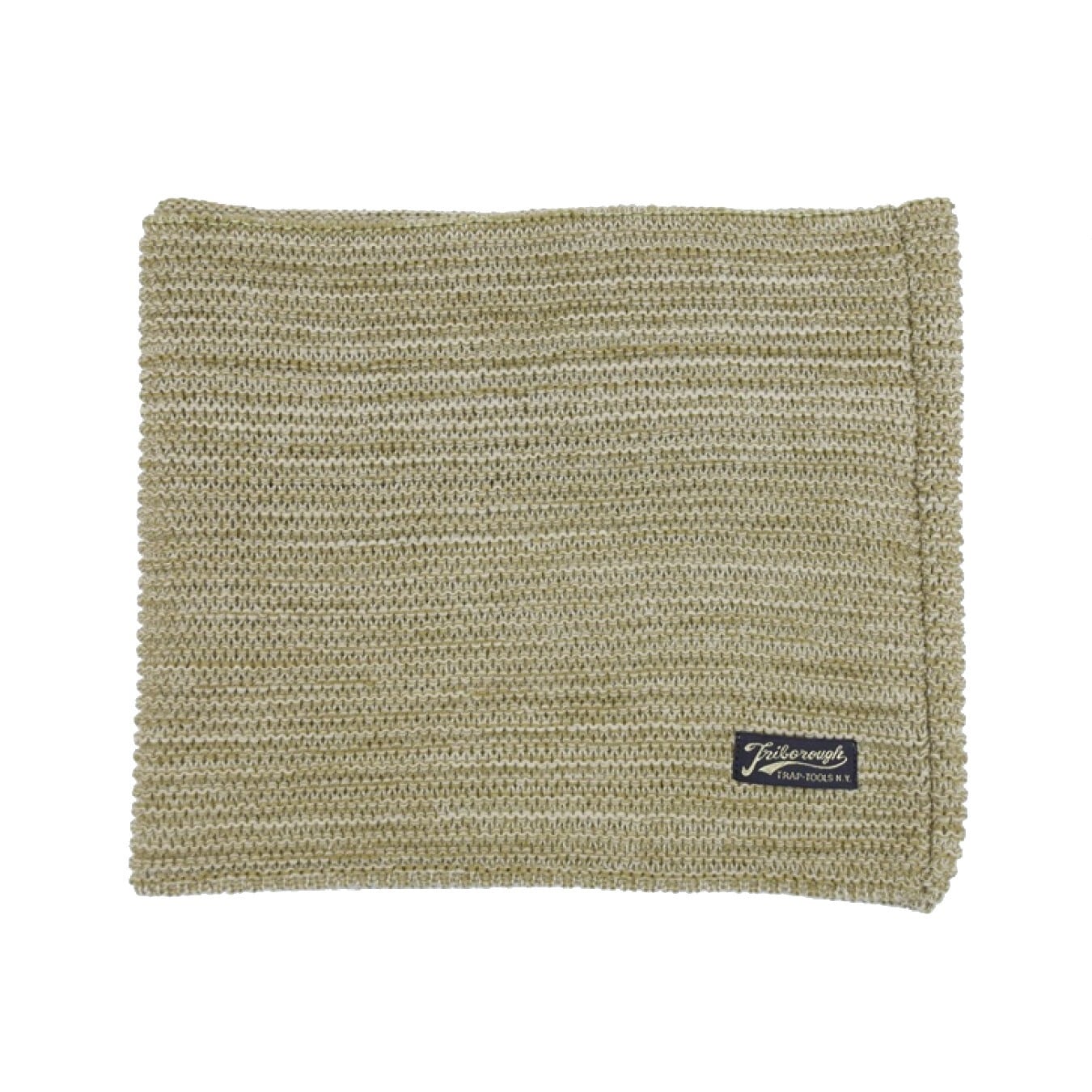 柔らかく肌触りの良いコットンニット、独自にミックスされたマテリアルにより、どの色も奥行のある良い雰囲気に仕上げられています。輪っか状につなげることで、頭から被って簡単に着脱可能。シングルで垂らして使っても良いですし交差して2重に巻くことでコンパクトにまとまり保温性もより高まります。