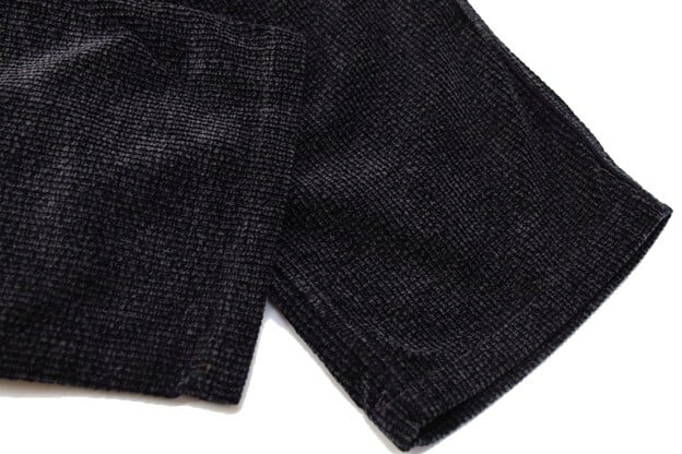 プリントコーデュロイを使用。まばらに杢感のある独特な表情が非常に魅力的で、冬場のアウターにも負けない、存在感あるコーデュロイ素材となっています。