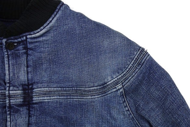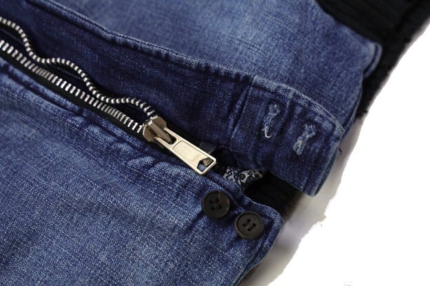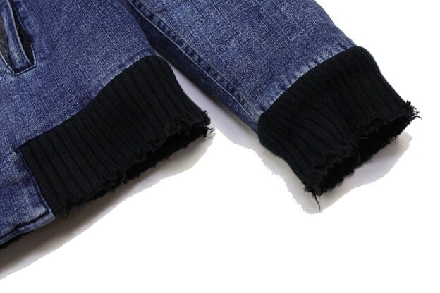 また、リブにはダメージ加工が施されており、本体のデニムに合わせてリアルな表情を生み出しています。