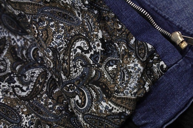 呼べるペイズリー柄を使用。ディティールとしてはファスナー付きの 2 重ポケット、迫力満点の