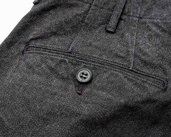 杢糸を使用しています。風合いも良く適度にハリコシ感の生地となっています。ポケットは両玉縁に、バックポケットも2026SSでは両玉縁のフラップなしとなります。シルエットはスリムフィットとなり、ジャケットに合わせるようなオフィスカジュアルなコーディネートにも使える一本となっています。
