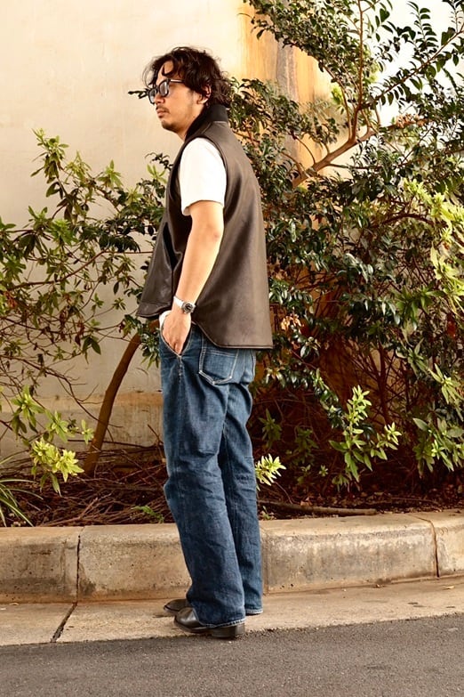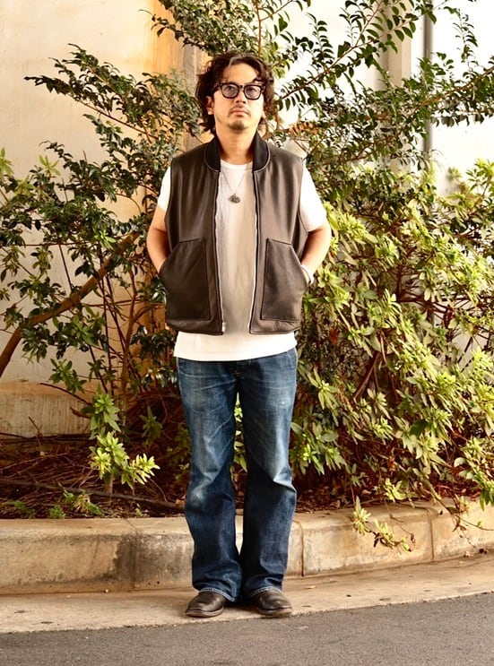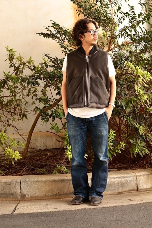 着用感はゆったりしたアウターベスト。スウェットやシャツの上からはもちろん、デニムジャケットやレザージャケットの上から羽織ってスタイリングをお楽しみ頂けます。