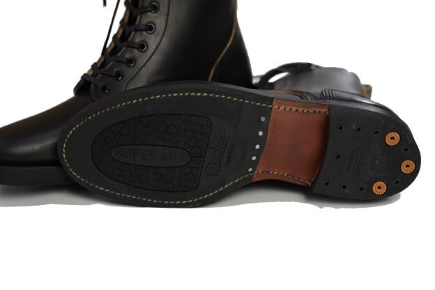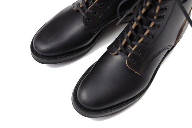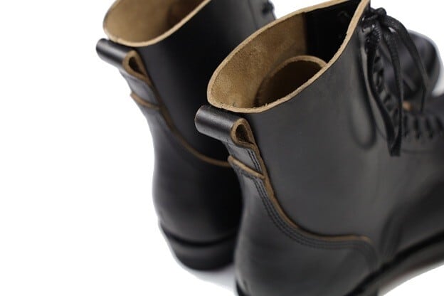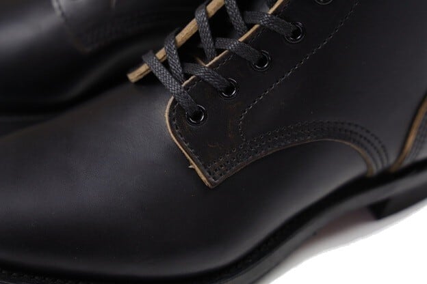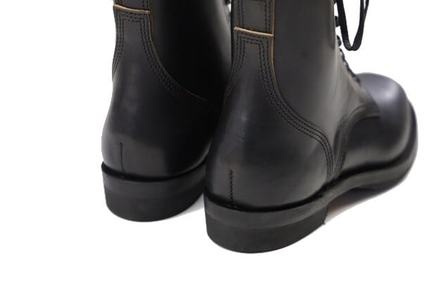 ホースシングル共通ディティールである、つま先に先芯を使用していない為、履きこむとつま先までしっかりと履きシワが入るのが特徴。2,5mm厚以上のホースバットはしっかりとした