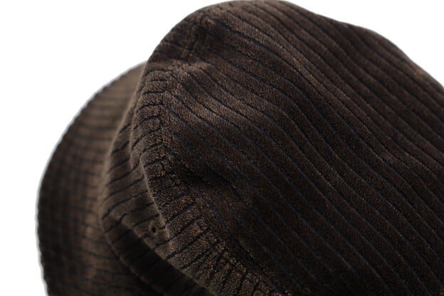 素材に針抜き別珍を使用したコンフロントハットが登場。ボリューム感のある別珍素材は、角度によって光沢ある表情を魅せ、存在感のある製品となっています。
