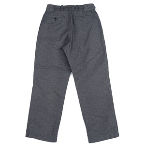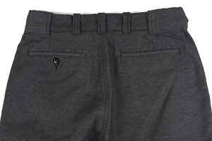 1950年代のワークスタイルをイメージし、無駄を省いた仕様と抜染ストライプの風合いを再現。素材そのものの強さを活かしたパンツに仕上げられています。スタイルはフロントボタンフライ仕様。サイドには手を入れやすい角度にスラッシュポケットが設けられ、右側には腰帯にコインポケットが用意されています。バックポケットは片玉縁のポケットが左右に設けられ、左側はボタン留めが可能です。ベルトループが両サイド共にトンネルループ仕様になっているのが特徴となっています。