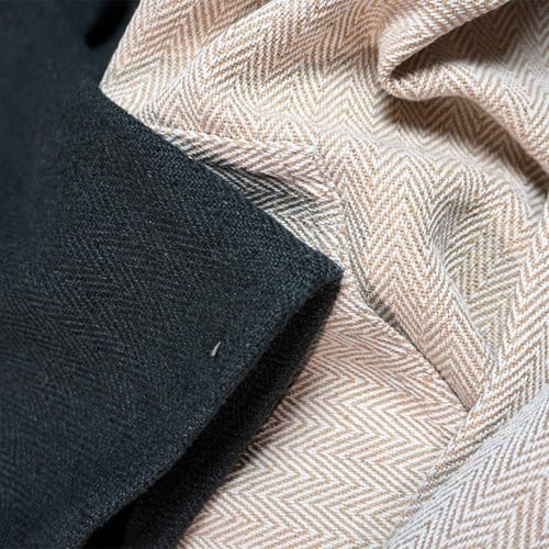 ラフに羽織れる気軽さと独特のリラックス感は、やがてアウトドア愛好者へ広がり、1970年代以降はアメリカ西海岸のサーファーやミュージシャンにも支持されるようになりました。この歴史あるアイテムをSugar&Co.では独自に再解釈。オリジナルの質感と空気感を残しつつ、着心地を重視したコットン/ポリエステルのオリジナルヘリンボーン編みファブリックで仕上げています。しっかりとした質感ながら柔らかく、着込むほどに風合いが増していくのも大きな特徴。ブラックカラーは硫化染めによる後染めで、着るほどに味わい深い表情へ。またベージュはナチュラルな色味で素材感を存分に引き立てています。