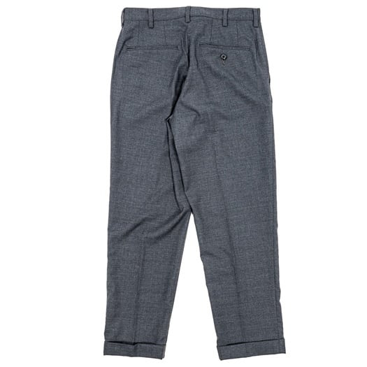 ワーカーズより『Moonglow Trousers 21, Combat Wool Tropical』のご紹介です。Moonglow Jacket とセットアップになるトラウザーズ。ベースとなるのは昨年登場した『IVY Trousers』となり、フロントはタック無し、背面にはダーツを左右で2カ所ずつ、計4カ所に設けて、ヒップ周りが綺麗に丸くなるようにパターンされています。