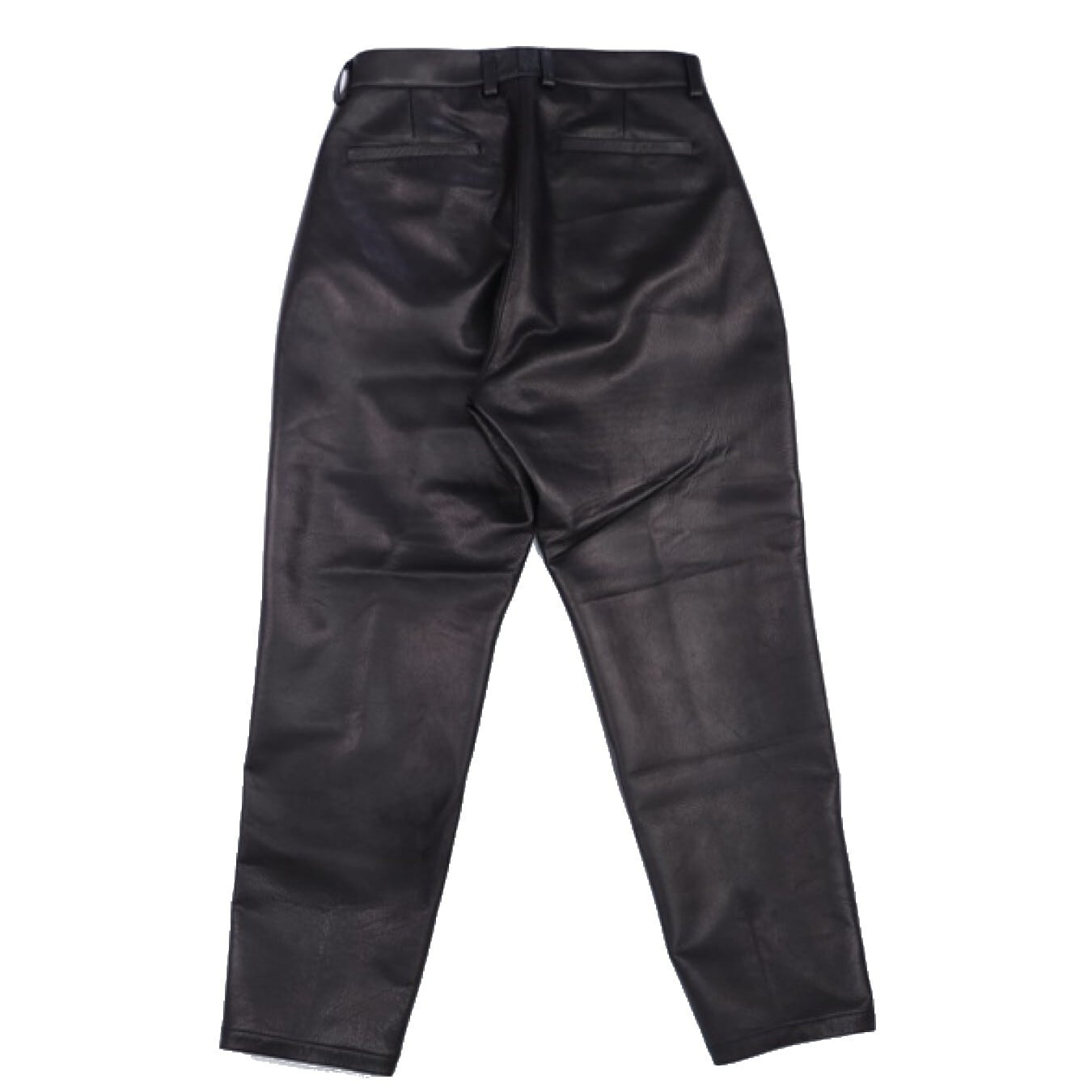 スタイルは2タック仕様のレザースラックス。ヒップ~腿にかけてゆとりを持たせ、裾にかけてテーパードしたシルエット。タックが効いているので動きやすく、尚且つ裾幅は19cm前後なのですっきりとした見た目になっています。フロントは"WALDES"刻印のジッパーフライ仕様。手を入れやすい角度にサイドポケットが設けられ、バックポケットは片玉縁ポケットが両側に設けられています。