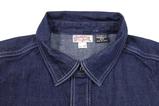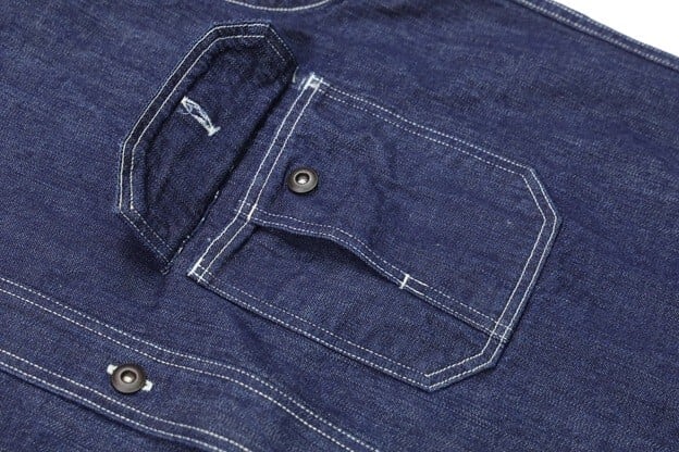 1930~40年代のワークシャツをイメージして製作された本製品。素材には、8,5ozのインディゴデニムを使用。タテ糸にはムラの強い糸を使用し、ヨコ糸にはナチュラルな弱ムラ糸を使用。タテ落ち感の強いインディゴデニムが、ワークシャツの雰囲気にマッチしています。