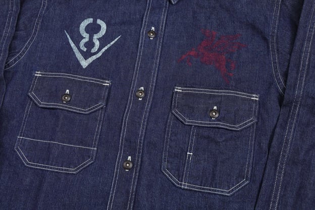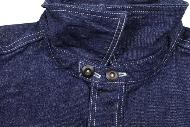 1930~40年代のワークシャツをイメージして製作された本製品。素材には、8,5ozのインディゴデニムを使用。タテ糸にはムラの強い糸を使用し、ヨコ糸にはナチュラルな弱ムラ糸を使用。タテ落ち感の強いインディゴデニムが、ワークシャツの雰囲気にマッチしています。