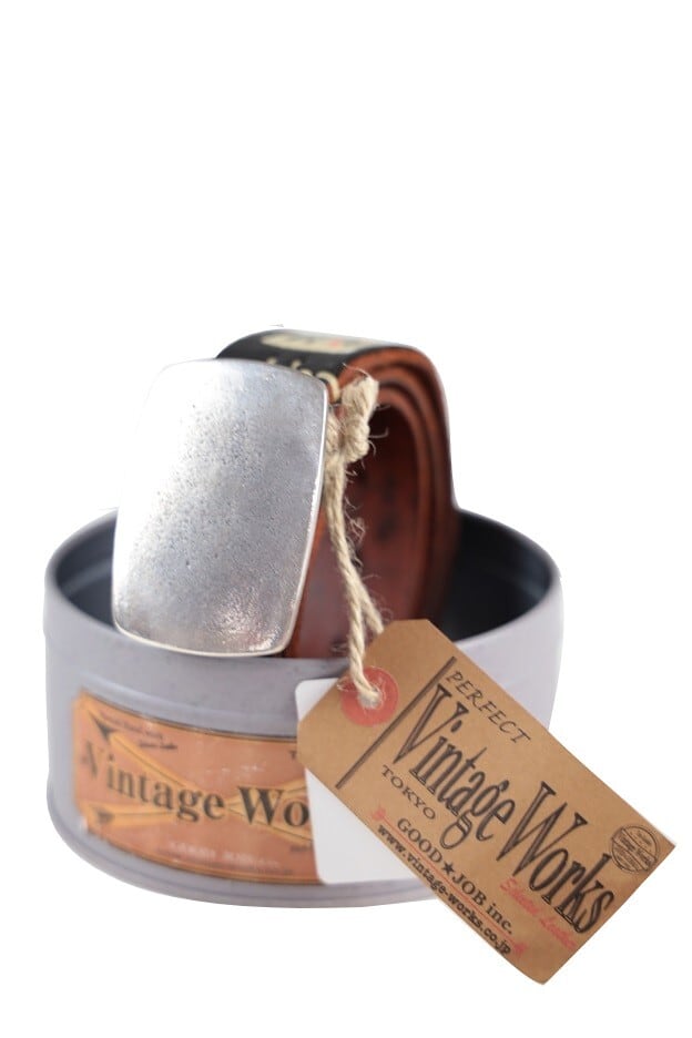 【VINTAGE WORKS】ではベルト1本につき、専用のスチール缶ケースとブランドロゴが入ったワックスペーパーが付属します。