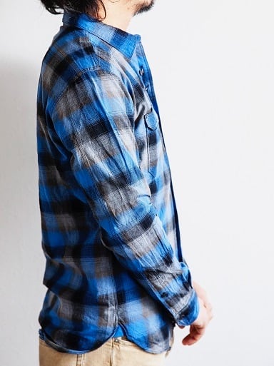 オンブレーチェックは薄手ながらしっかりとハリのある生地で、着るほどに柔らかく体に馴染み、発色の良い綺麗な色味がシーズン問わずコーディネートに映える一着です。