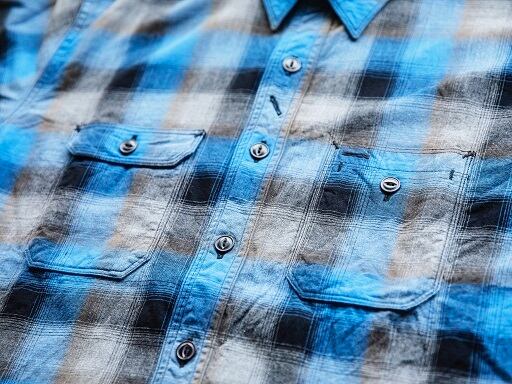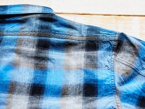 使用される素材はコットン100%のオンブレーチェックとなり、薄手ながらハリ感のある生地で