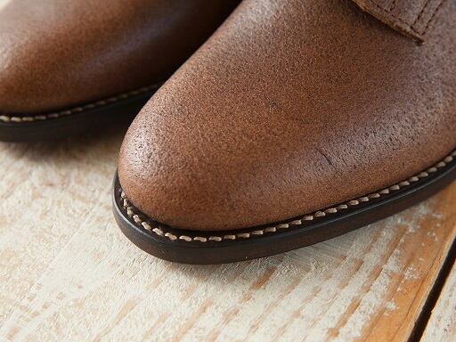 アッパー部にHORWEENラフアウト(牛革スエード)レザーを使用し、一枚仕立てで仕上げたシンプルな外羽根式シューズ。
