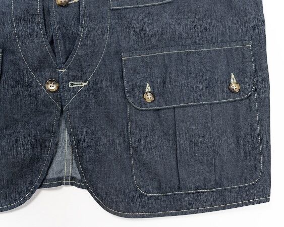 素材にはコットン100%のインディゴデニムを使用。ライトアウターに使われるくらいのデニムなので極端にメリハリある色落ちにはならないですが、洗いこんで落ち着いた雰囲気の色落ち具合が良い雰囲気になりそうです。