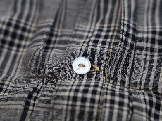 フロントプリーツに、ボタンには白蝶貝ボタンが使用されています。