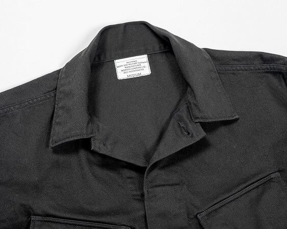 比翼仕立ての2ndタイプ以降のモデルをベースとし、肩のエポレットも省略したデザインは、ポケットの作りやパターンは参考にした古着にできるだけ忠実にし、袖口は開きやすいように変更、背面のヨークやウエストの調整ボタンも無くしています。