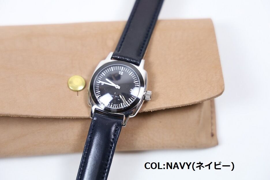 16mmのラグ幅で製作される革ベルト部分は、シューズラインでもお馴染みのホーウィン社のシェルコードバンを使用。