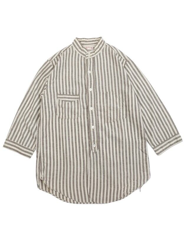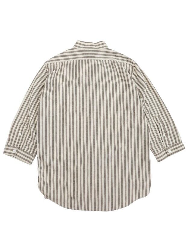 コットンリネンの素材ですが、柔らかく肌触りの良い素材感で着心地良く、春夏にも着用しやすいよう七部袖シャツとなっています。