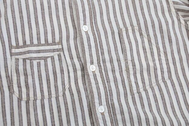 ヴィンテージ7ozコットンリネンストライプシャンブレー