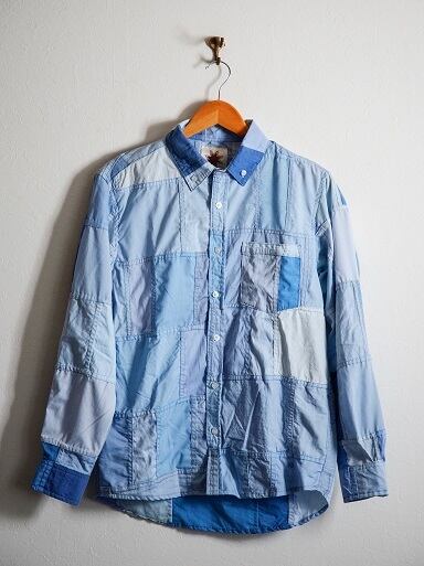 同系色のパッチワーク生地により製作されたナスングワムの新作BDシャツ。