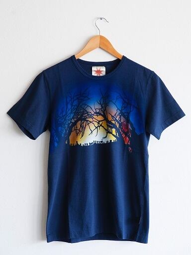 森の中の炎に人影が集まったデザインは、綺麗なグラデーションのプリントにより、奥行きのある表情となっています。