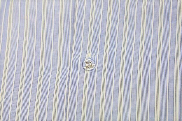 重なりあうストライプシャツの裾がフラップを兼ね、フロントとバックに隠しポケットを配置し
