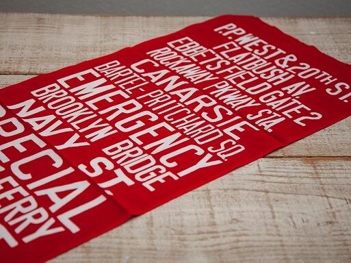 1930年代にブルックリンを走っていた、トローリーバスの行き先表示が抜染でプリントされているのが特徴です。