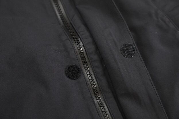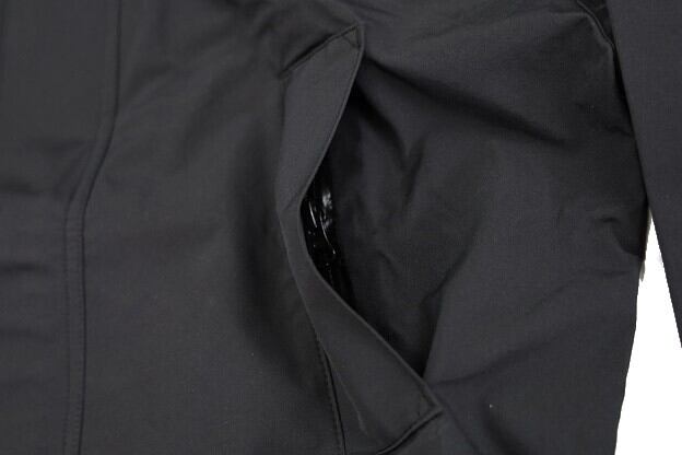 胸にはハンドウォーマーポケットが左右でハの字に配置。入口は止水ジップを使用しています。