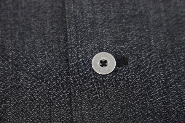 ムラ糸チャコール系の糸に生成りの糸を撚り合わせた双糸を使用し、旧式織機で織りあげられた