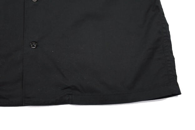 左右にプリーツが入る仕様。袖口は共地の別パーツを縫製しており、ボタンには13mmの尿素ボタンを使用。